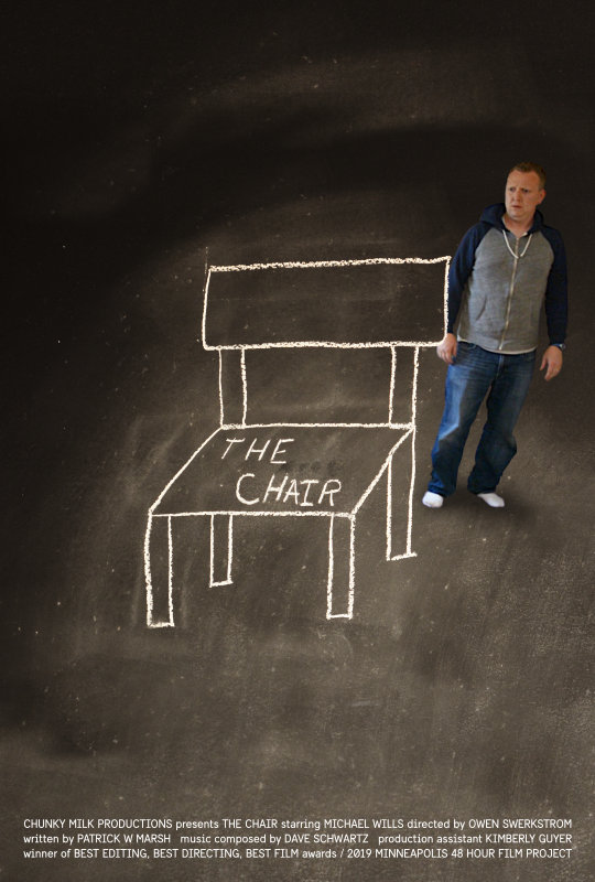 Meet the winners of the 2019 Minneapolis 48 Hour Film Project's awards for Best Editing, Best Directng, and, oh yeah Best Film! The Chair, our fifth 48-hour short, is sending us to Filmapalooa in Rotterdam! We will publish it the moment we're sure we're alowed to - this is new, exciting, and most surprising territory for us!